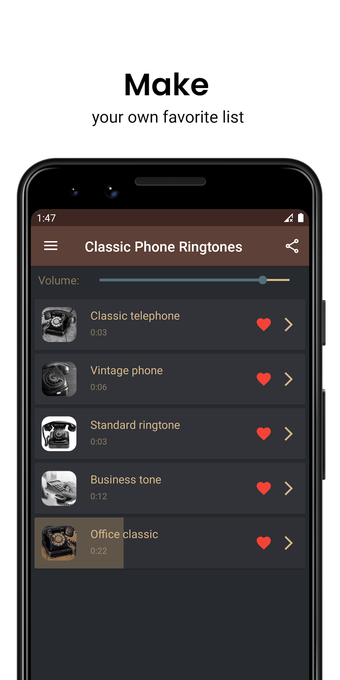 すべての最高のクラシックの携帯電話の着信音を1つのアプリで手に入れましょう。Classic phone ringtoneは、各Android携帯電話のユニークで異なる音を無料で提供するアプリです。このアプリは、最も人気のあるヴィンテージの着信音の最高のコレクションを提供する、その種類の最初のアプリです。37の着信音とバックグラウンド音があり、Classic phone ringtoneで飽きることはありません。